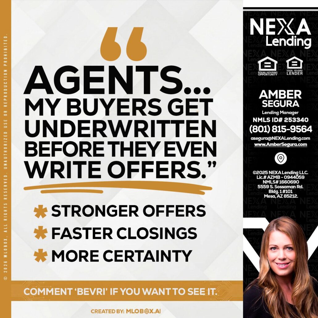 Hi, my name is Amber Segura. I’m a Loan Officer with NEXA Lending LLC., offering personalized mortgage solutions, fast customized quotes, great rates and service with integrity.